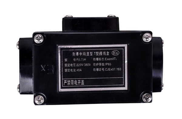 详细说明: 防爆三通接线盒用于防爆区域电热带与电热带的连接,增加电热带的长度或用在同一管线上配用不同功率的电热带及三叉管线等较复杂的场合。防爆标志“EⅡT4",与电热带配套后适用于工厂一区、二区爆炸性气体混合物组场所。其外壳为高强度塑料。 1、主要技术性能 额定电流:交流220V/380V 额定电流:40A 防爆标志:EⅡT4 电流线嘴螺纹:G1/2 2、产品结构及安装示意